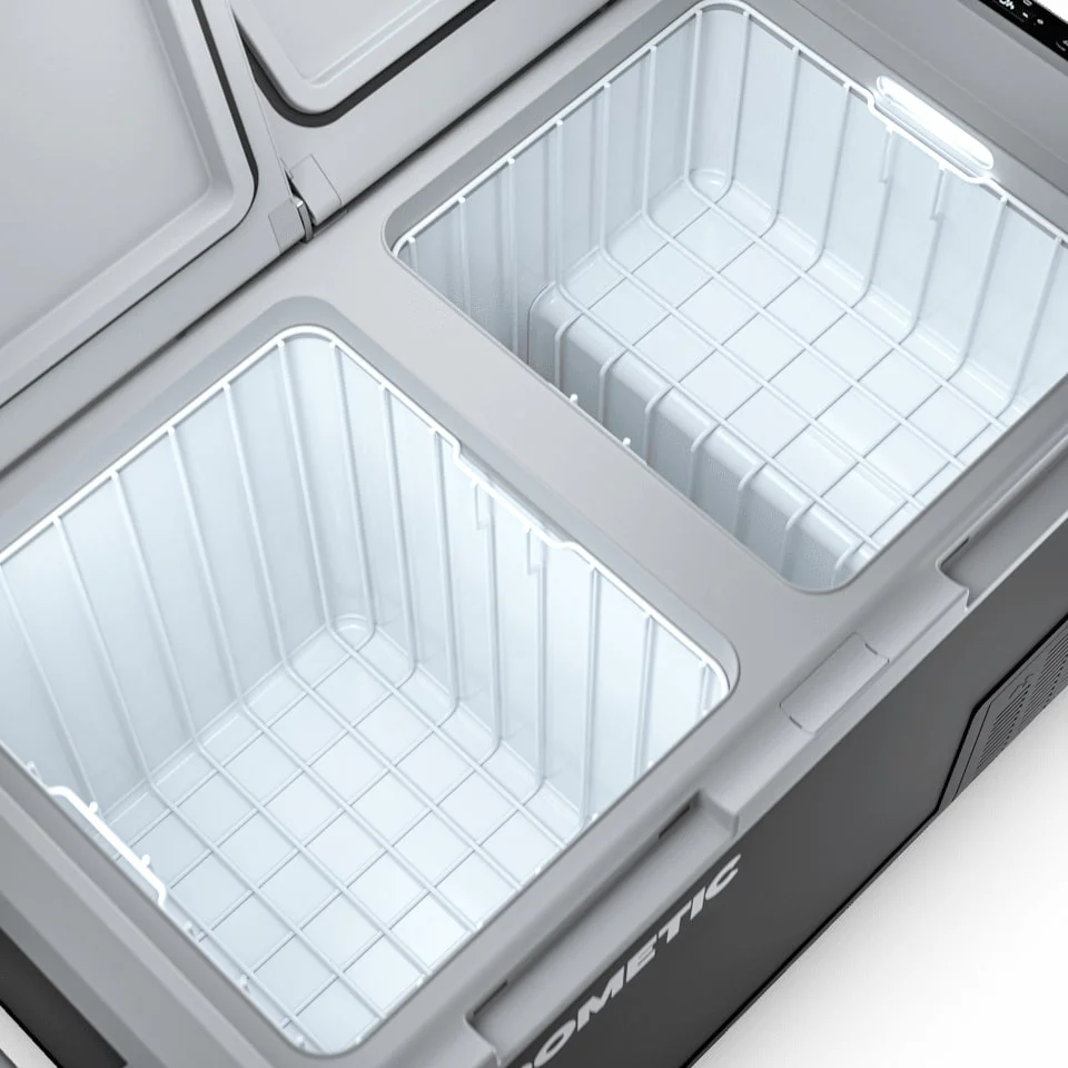 Superb cooling performance with flexibility to suit your needsWeighing in at 26 kg, the CFF 70DZ maximises all of its 70 l volume. The dual-zone interior layout is at the forefront of the Dometic CFF 70DZ’s design, providing the flexibility to cool contents in independently controlled storage compartments. This, coupled with the generous insulation, results in moderate power draw from the battery and makes the CFF70DZ one of our most economical mobile cool boxes. A great choice for adventurers who want to experience a truly mobile lifestyle. |